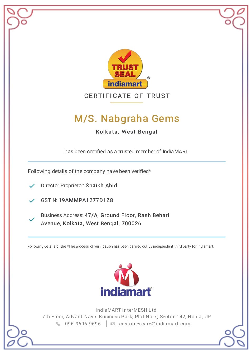 AWARDED AS MOST TRUSTED GEMSTONE BRAND IN KOLKATA "NABGRAHA GEMS"